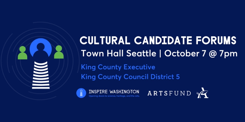 On October 7th and 8th Inspire Washington will host the Cultural Candidate Forums to provide general election contenders in the Seattle and King County races the opportunity to outline their plans for restoring, supporting, and expanding the region’s cultural arts, heritage, and natural science fields. Participating candidates will be determined by the results of the primaries on August 5th.