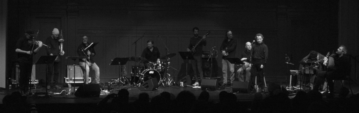 On Sunday, March 1, The Great Hall was a melting pot of Arabic sound. Gordon Grdina was joined by an ensemble of ten musicians, each accomplished in his own right. Unlike previous concerts in the Global Rhythm series, which have included a local and a global performer playing separate and distinct sets, this concert was a collaboration with Gordon Grdina’s ensemble, Haram, featuring Marc Ribot on guitar.