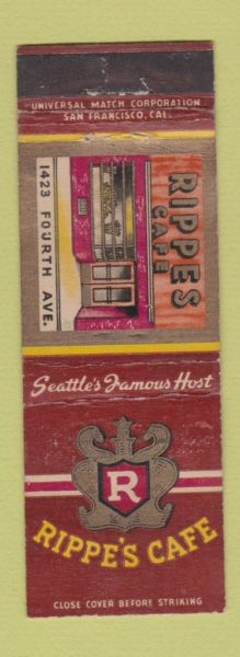 Frank Rippe, having worked at the Saltair Restaurant in Salt Lake City, wanted to start his own restaurant in Seattle. And in 1910, he did. There were a few stools lining a counter and a stairway that lead to a balcony where tables for ladies were available. The restaurant was, a critic wrote, “just that chummy sort of cafe where foods are carefully prepared.” The place prospered. He doubled his seating capacity at 314 Pike Street.
