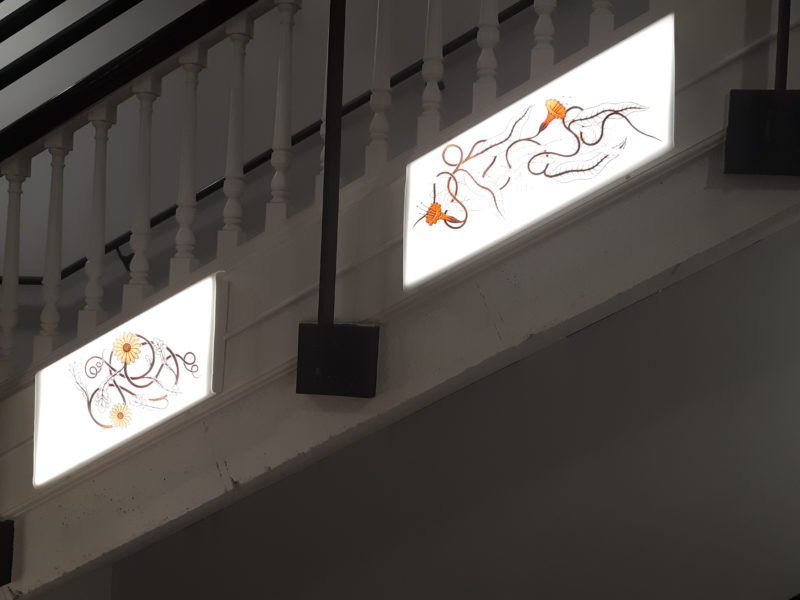 There’s more to see at Town Hall aside from the plethora of events that we have taking place (you can check out our calendar here). There is art to see. Town Hall commissioned several artists to create permanent pieces that can be found throughout our building. In the southwest stairwell, for instance, you’ll see artwork on light boxes done by Shannon Perry.