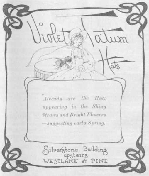 There was an ad in the January 17, 1920 Town Crier for Violet Tatum Hats. “Already-are hats appearing in the shiny straws and bright flowers- suggesting early Spring.” Hats were a big thing in the 1920s. And Spring is a big thing at Town Hall.